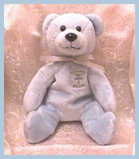 HolyBears are approximately 8 1/2 inches from head to toe and are made of a beautiful, plush, sparkling fabric with the highest quality of embroidery. The hangtag, shaped like the Holy Bible with an applicable Bible verse inside, is made from a high grade stock paper. The front of the tag will have a Cross and the words Holy Bible foil-stamped in Gold. The outer edges of the hangtag will also have Gold foil-stamping. You will find that overall it is a very attractive product.